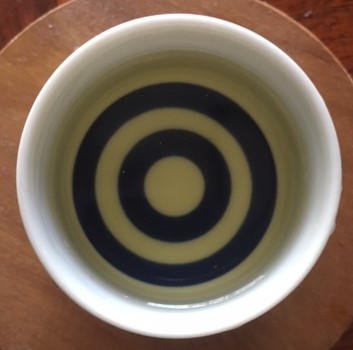 このお猪口(ちょこ)で飲むと通っぽいですよね。お酒の色味がよく分かるので、最初の一杯目はこのお猪口を使って飲んでいます。