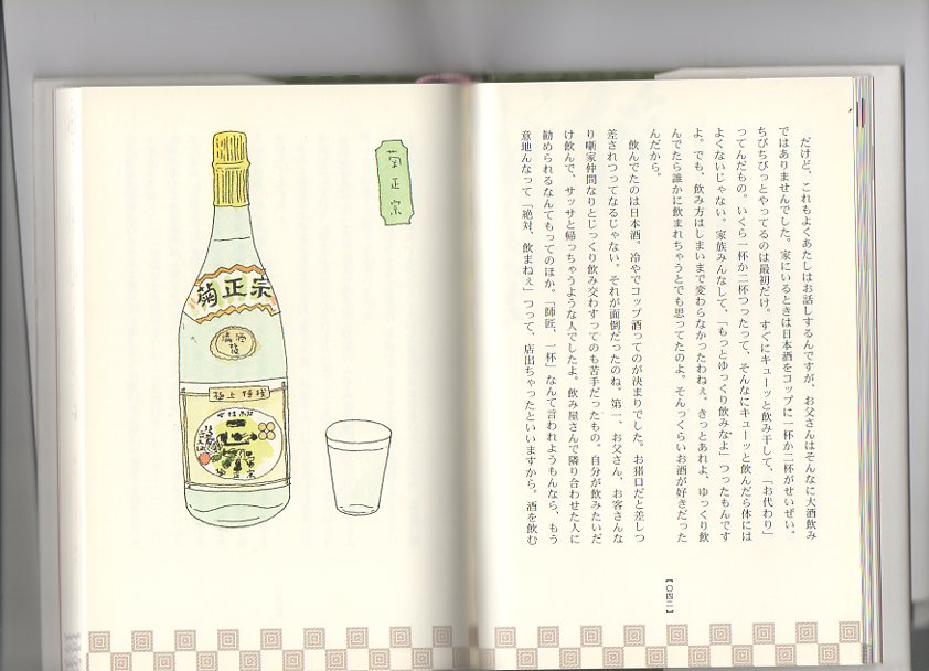 「志ん生の食卓」は、五代目古今亭志ん生さんの食にまつわる話を、長女である美濃部美津子さんが親子ならでは優しく、あたたかな視点から紹介した2008年発行の本です。その中の[お父さん好みの食べもの]「菊正をこよなく愛した」を紹介します。